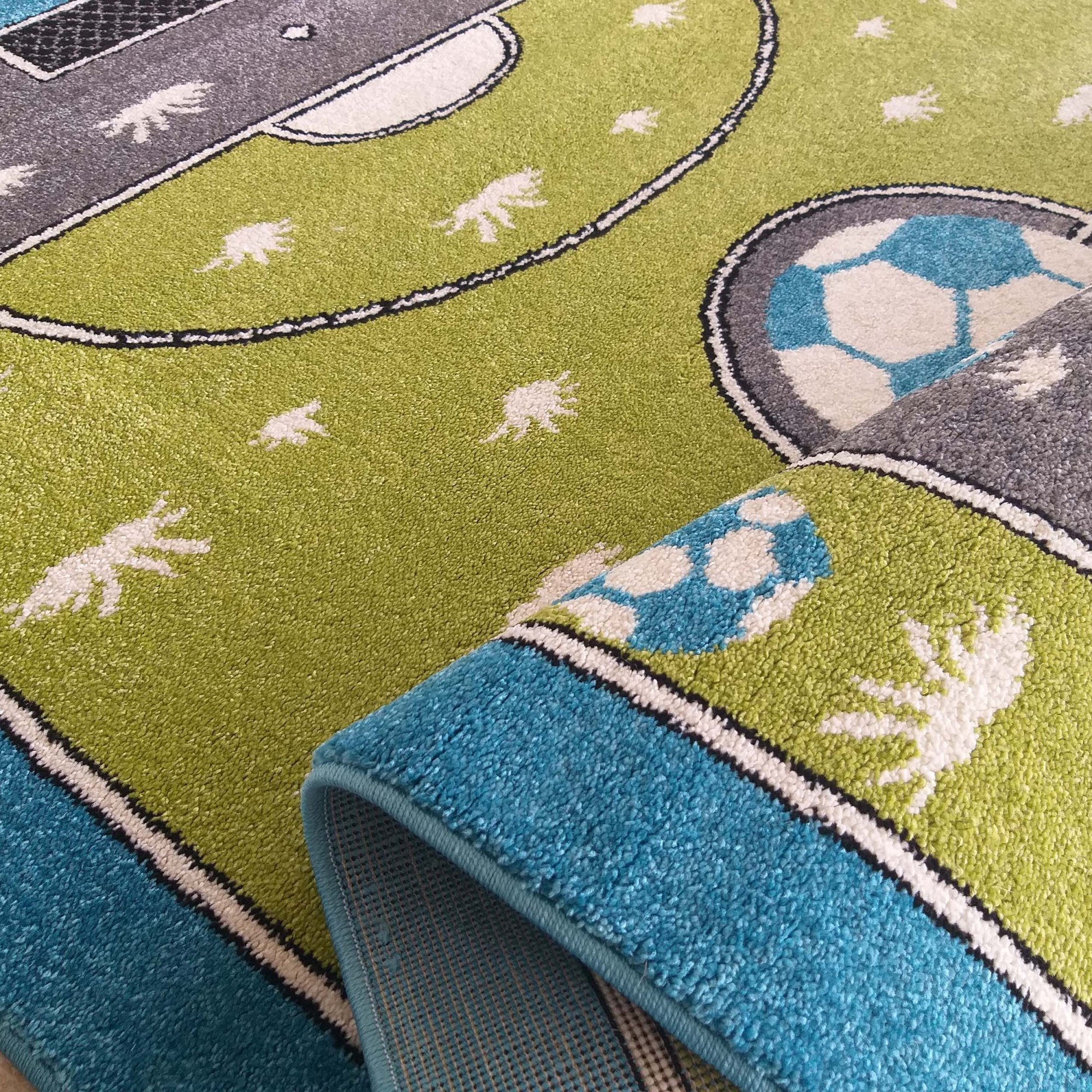 Dětský koberec, který potěší každého malého fotbalového fanouška! Koberec je vyroben z kvalitní polypropylenové příze a je odolný vůči deformacím a ušpinění, které by mohly vzniknout během hry. Je také bezpečný pro děti, protože neobsahuje žádné škodlivé látky a je antialergický. Koberec je hustý, měkký a příjemný na dotek. Použitý materiál zaručí, že barvy zůstanou dlouho syté a nevyblednou.