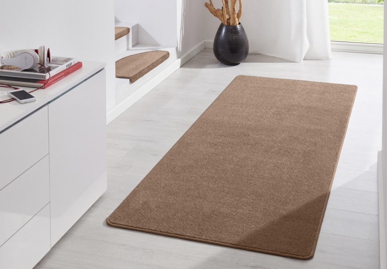 Kusové koberce Fancy od německého výrobce Hanse Home se vyznačují krátkým, snadno čistitelným vlasem, který je vyroben ze 100% polypropylenu. V nabídce najdete mnoho barevných odstínů i velikostí. Koberce jsou precizně obšité ze všech čtyř stran. Bez obav je můžete položit i do místnosti s podlahovým vytápěním. Velkou výhodou je také kompatibilita s robotickými vysavači. V kolekci najdete i speciální ložnicové sady nebo nášlapy na schody, které se vyrábí ve stejných odstínech jako klasické koberce.