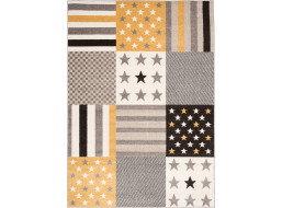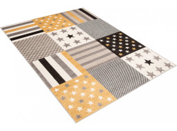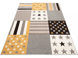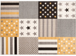 Kusový koberec FIESTA Pruhy a hvězdičky - žlutý/šedý