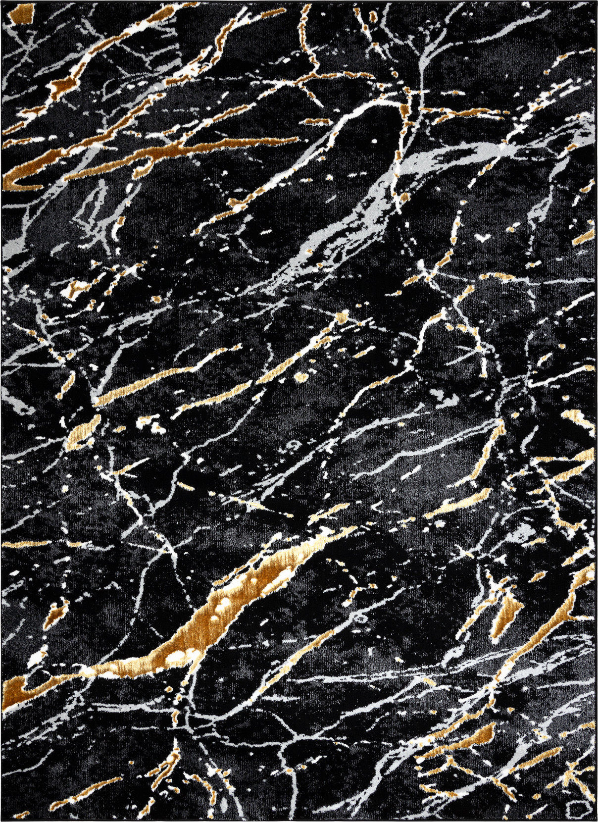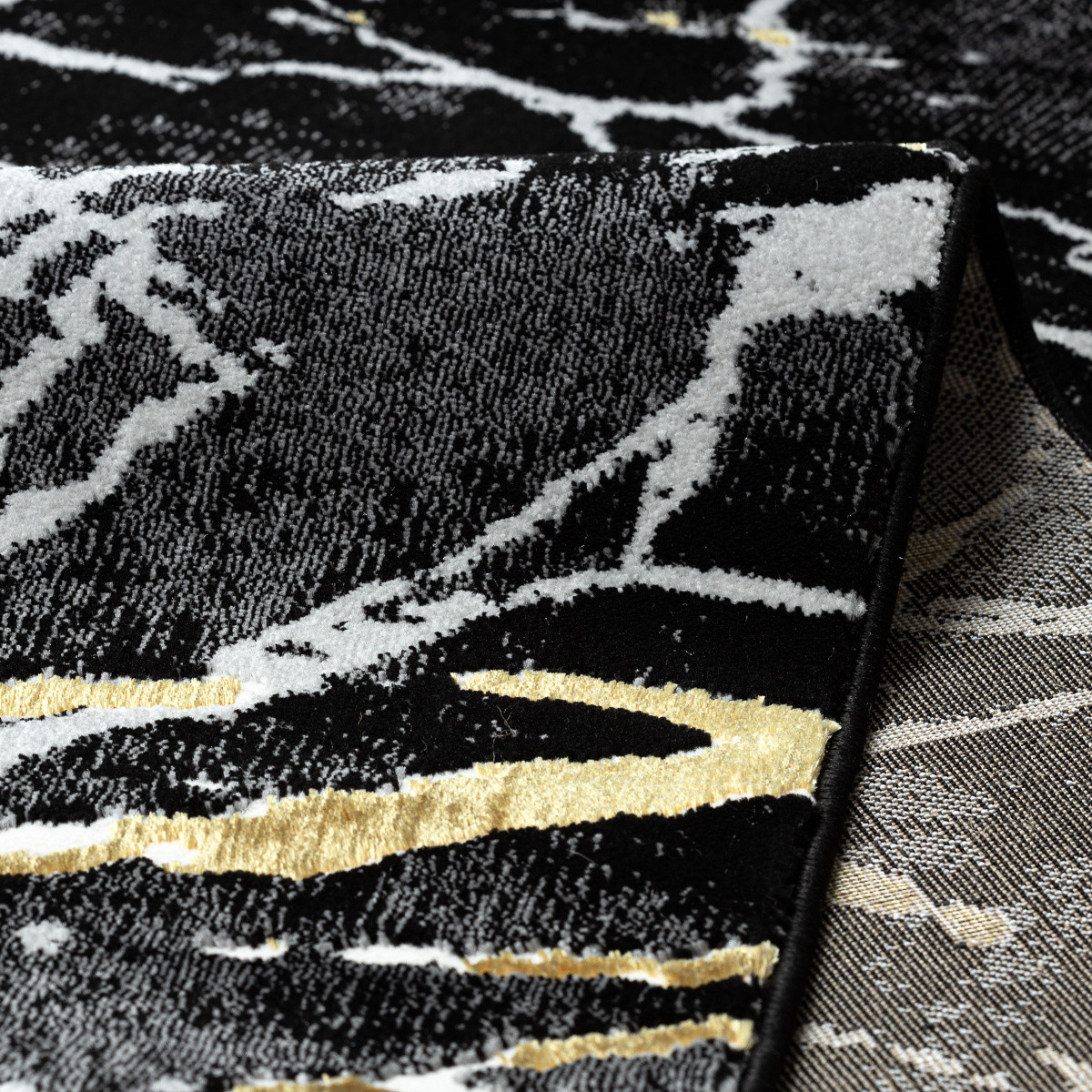 Kusový koberec Allure 1963 black/gold je pro ty, kteří chtějí dodat svému domovu nádech luxusu a odvážného stylu. Černý podklad s výraznou mramorovou kresbou je protkán zlatými a šedými liniemi, které působí jako třpytivé žilkování drahého kamene. Výsledkem je design, který vyzařuje noblesu, eleganci a dramatický šarm. Vlas tvoří směs polypropylenu a polyesteru, díky čemuž je koberec odolný, měkký a snadno se udržuje. Dvě výšky vlasu vytvářejí jemný 3D efekt, který podtrhuje mramorový vzor a dodává mu hloubku i luxusní vzhled. Certifikace OEKO-TEX zaručuje zdravotní nezávadnost a šetrnost k životnímu prostředí, koberec je navíc vhodný i pro použití s podlahovým vytápěním. Allure se skvěle hodí do moderních obývacích pokojů, kde se stane výrazným středobodem, do ložnic pro vytvoření sofistikované atmosféry. Výška vlasu: 10 mm