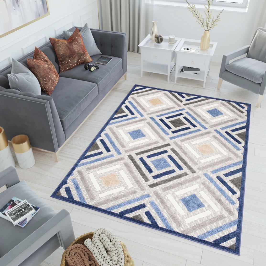 Kusový koberec AVENTURA Tiles - šedý/modrý