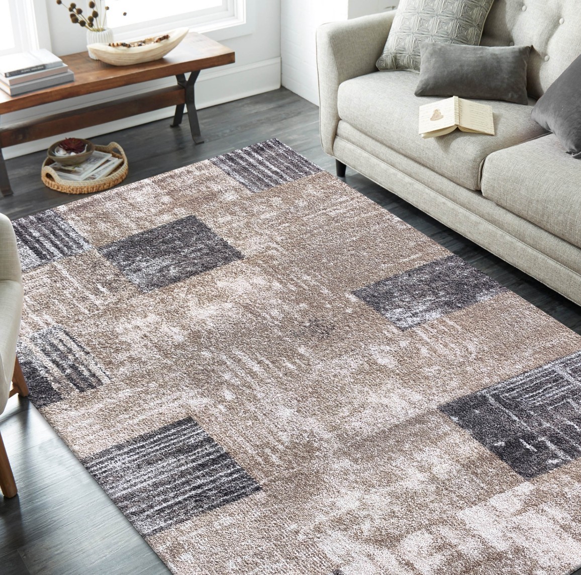 Kusový koberec PANNE squares - odstíny hnědé