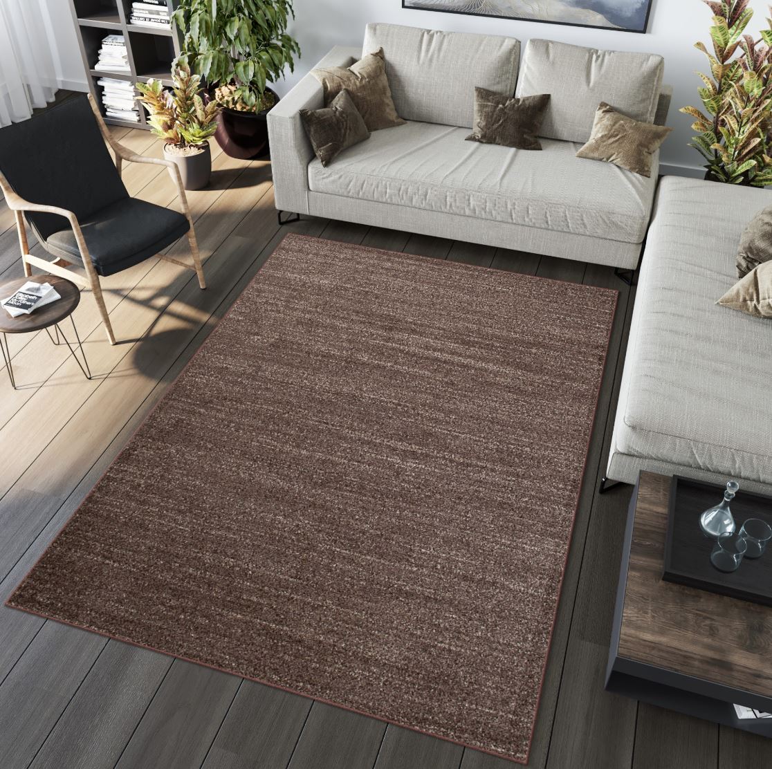 Kusový koberec SARI Mono - tmavě hnědý