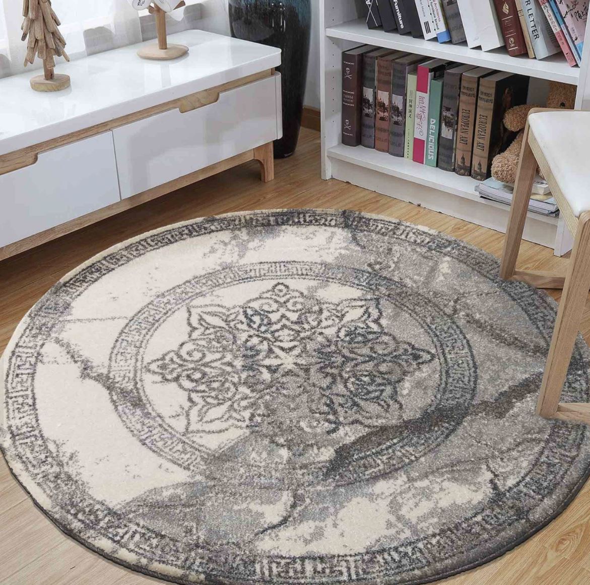 Vysoce kvalitní kulatý koberec STIVA se osvědčí v elegantních místnostech. Motiv s tradičním ornamentem jistě osloví všechny milovníky klasického stylu s moderním nádechem. Tento na dotek příjemný koberec působí jako izolace proti chladu podlahy. Moderní koberec STIVA vypadá fantasticky v každém prostředí a často se používá do obývacích pokojů nebo ložnic. Je velmi příjemný na dotek. Koberec je šedý (s nádechem krémové) s výrazným ornamentem, který dodá charakter každé místnosti.
