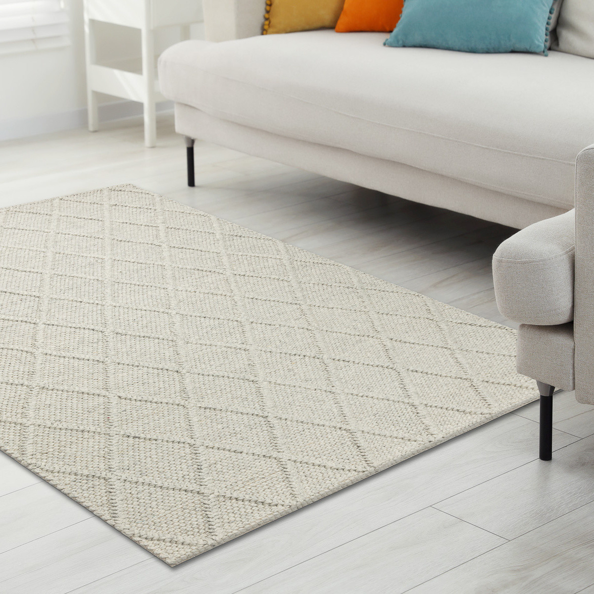 Kusový koberec Tahar 99001C beige v béžovém odstínu vnáší do interiéru útulnost a klid. Je utkaný ručně z přírodní vlny, jejíž povrch působí měkce a zároveň robustně. Typickým znakem je strukturovaný povrch s výraznými smyčkami, které vytvářejí plastický efekt a originální texturu. Jemný geometrický motiv v podobě kosočtvercové sítě dodává celku nenápadnou eleganci, která skvěle ladí s přírodně laděnými interiéry. Díky svým tlumicím a izolačním vlastnostem je vlna ideální volbou pro klidné a pohodlné bydlení. Koberec se krásně vyjímá v ložnici, obýváku i domácí pracovně. Každý kus je originál s nádechem ručního řemesla. Výška vlasu: 0 mm.