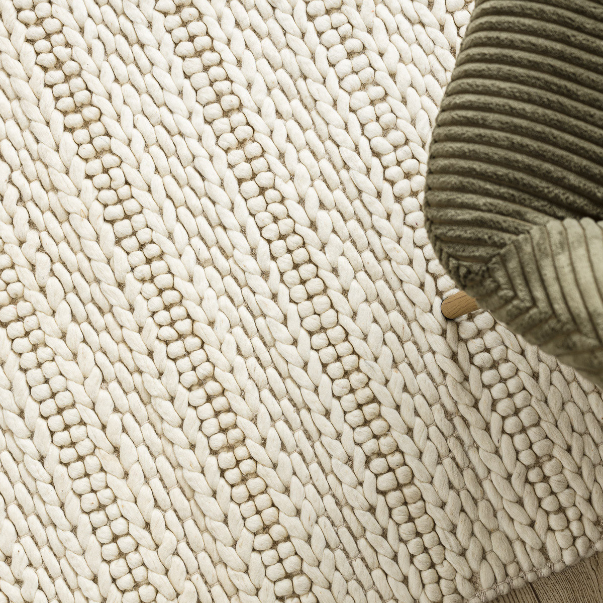 Krémový koberec Tahar 99001B ručně tkaný čistě z vlny, která působí hřejivě a přirozeně. Vyniká výraznou smyčkovou strukturou s robustními uzly v liniovém vzoru. Tento koberec se hodí do obývacího pokoje, ložnice nebo útulné pracovny, kde zjemní prostor a zároveň dodá vizuální zájem. Vlna výborně izoluje, tlumí hluk a je přirozeně odolná vůči znečištění. Díky ruční výrobě má každý kus svůj jedinečný charakter. Výška vlasu: 0 mm.