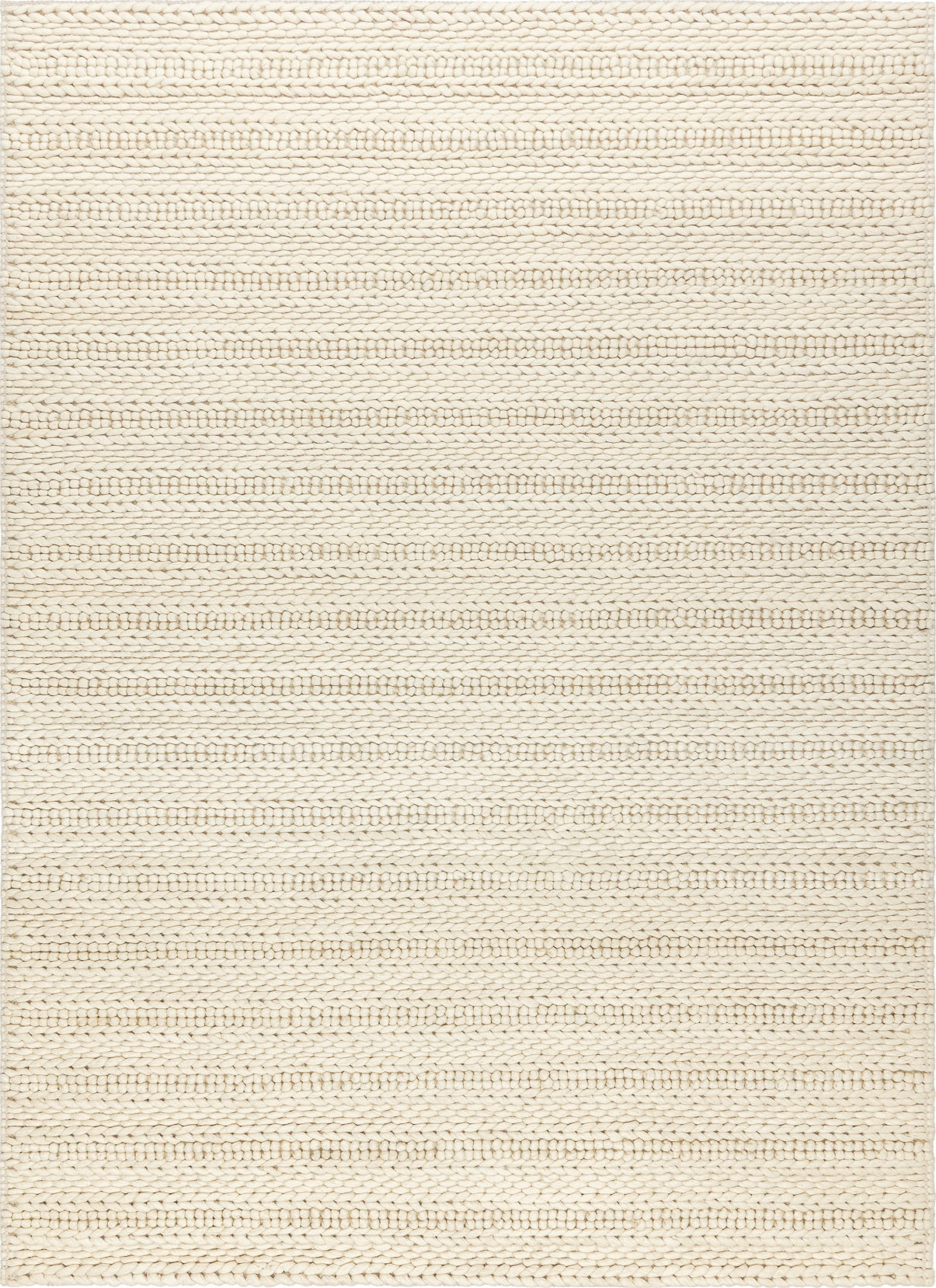 Krémový koberec Tahar 99001B ručně tkaný čistě z vlny, která působí hřejivě a přirozeně. Vyniká výraznou smyčkovou strukturou s robustními uzly v liniovém vzoru. Tento koberec se hodí do obývacího pokoje, ložnice nebo útulné pracovny, kde zjemní prostor a zároveň dodá vizuální zájem. Vlna výborně izoluje, tlumí hluk a je přirozeně odolná vůči znečištění. Díky ruční výrobě má každý kus svůj jedinečný charakter. Výška vlasu: 0 mm.
