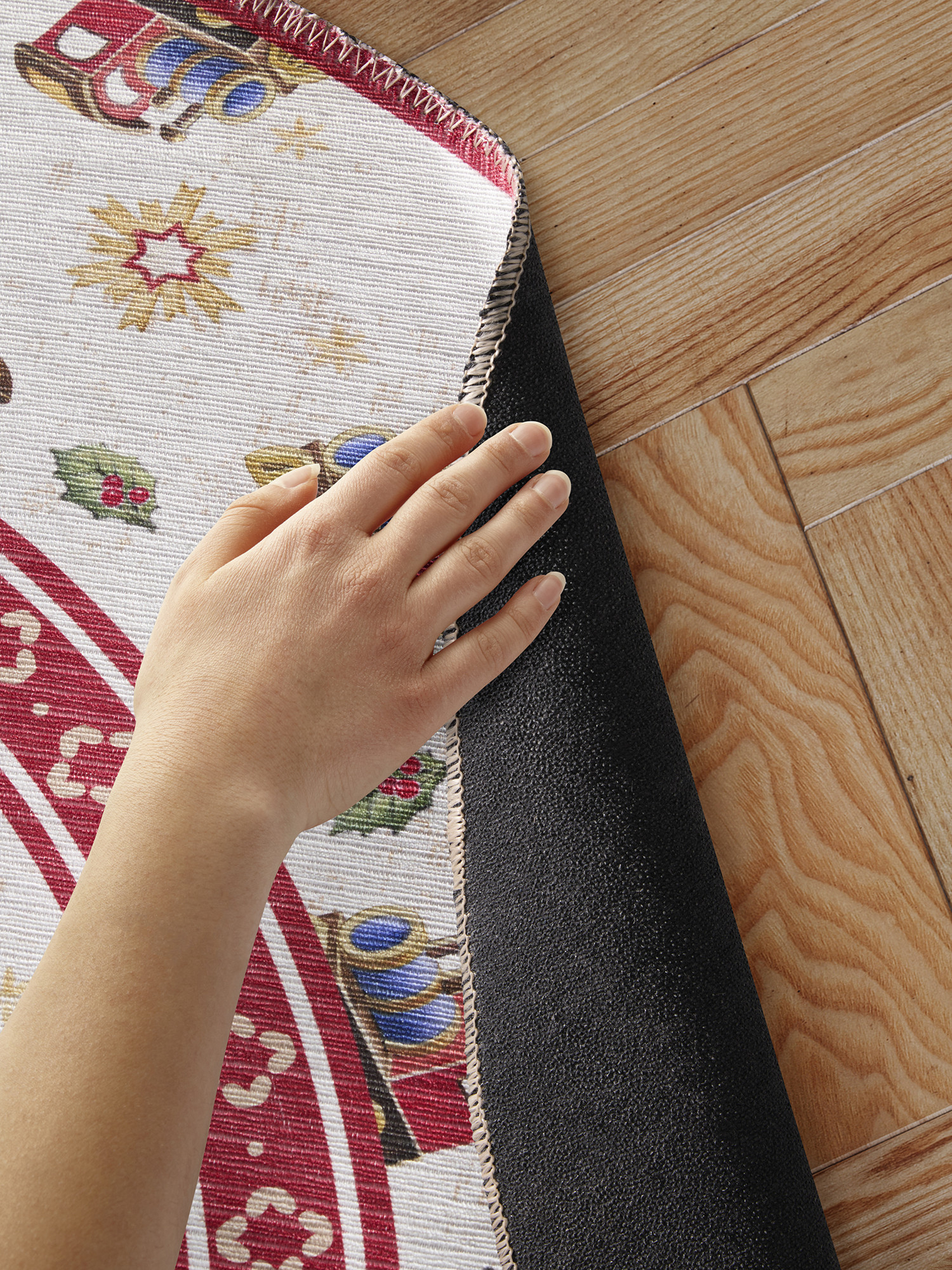 Řada koberců Villeroy & Boch Toy's Delight přináší do interiérů kouzlo Vánoc s nádechem nostalgie. Tyto koberce jsou zdobeny tradičními vánočními motivy, které vnesou do každého prostoru slavnostní atmosféru. Vyrábějí se z vysoce kvalitního polyesteru, díky čemuž jsou nejen odolné, ale i příjemné na dotek. Jejich povrch nezdobí klasický vlas, ale potisk, což jim dodává moderní a praktický vzhled s velmi nízkým profilem. Praktickou vlastností těchto koberců je protiskluzová rubová strana, která zajišťuje, že lépe drží na svém místě, a to i na hladkých površích. Jsou také ideální pro domácnosti s robotickými vysavači a vhodné pro vytápěné podlahy. Okraje koberců jsou po celém obvodu pečlivě obšité, což zvyšuje jejich trvanlivost a dodává jim elegantní vzhled. V neposlední řadě mají certifikát Oeko-Tex, který garantuje, že neobsahují žádné škodlivé látky.