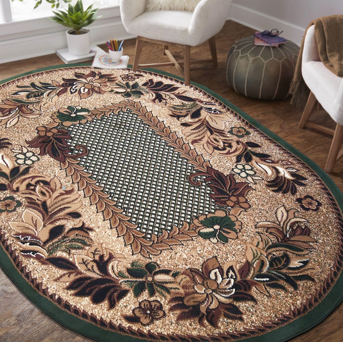Oválný koberec z kolekce ALPHA je perfektním řešením do pokojů zařízených v klasickém stylu. Na jeho výrobu byly použity vysoce kvalitní materiály, díky kterým je odolný proti oděru, zabarvení a deformacím. Koberce z této série jsou skvělým nápadem do pokoje pro hosty, ložnice, pracovny nebo předsíně. Díky preciznímu zpracování jsou elegantní a jedinečné a květinový vzor s klasickým obdélníkem uprostřed dodá kouzlo každé místnosti, ve které se nachází.