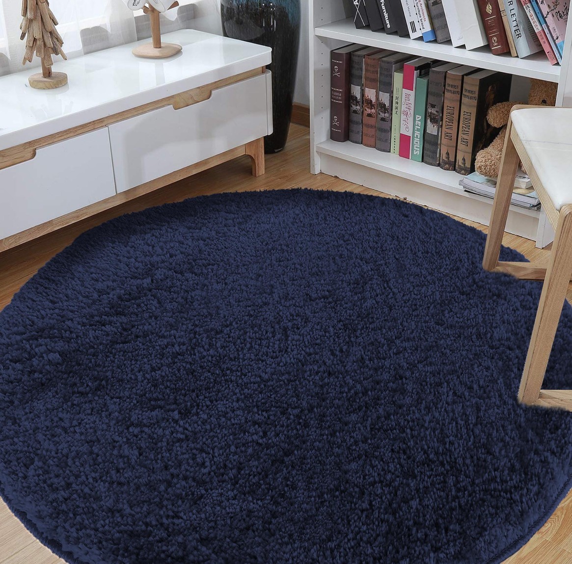 Moderní koberec SHAGGY CAMIL kulatý - tmavě modrý