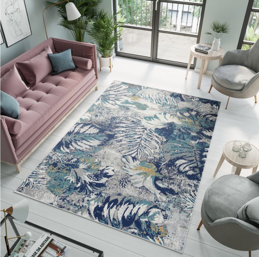 Moderní kusový koberec DENVER Tropical - šedý/modrý