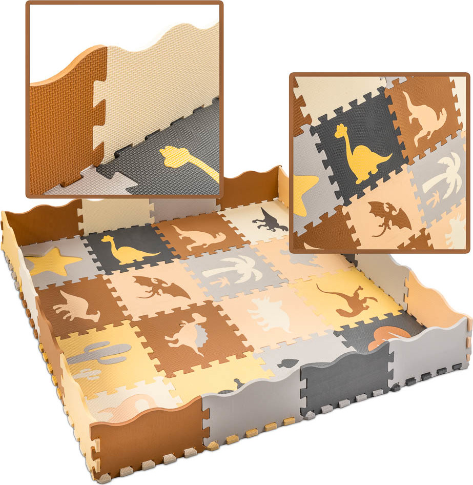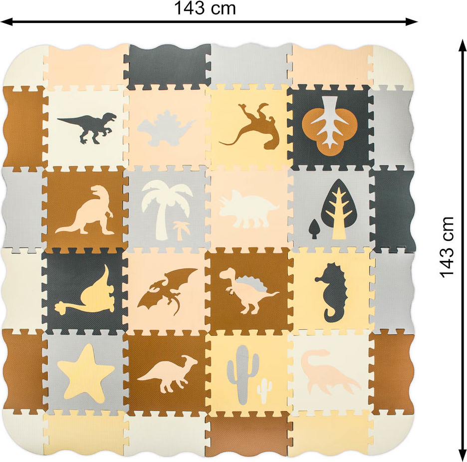 Pěnová puzzle podložka/ohrádka 36 prvků - Dinosauři - 143 cm x 143 cm x1 cm